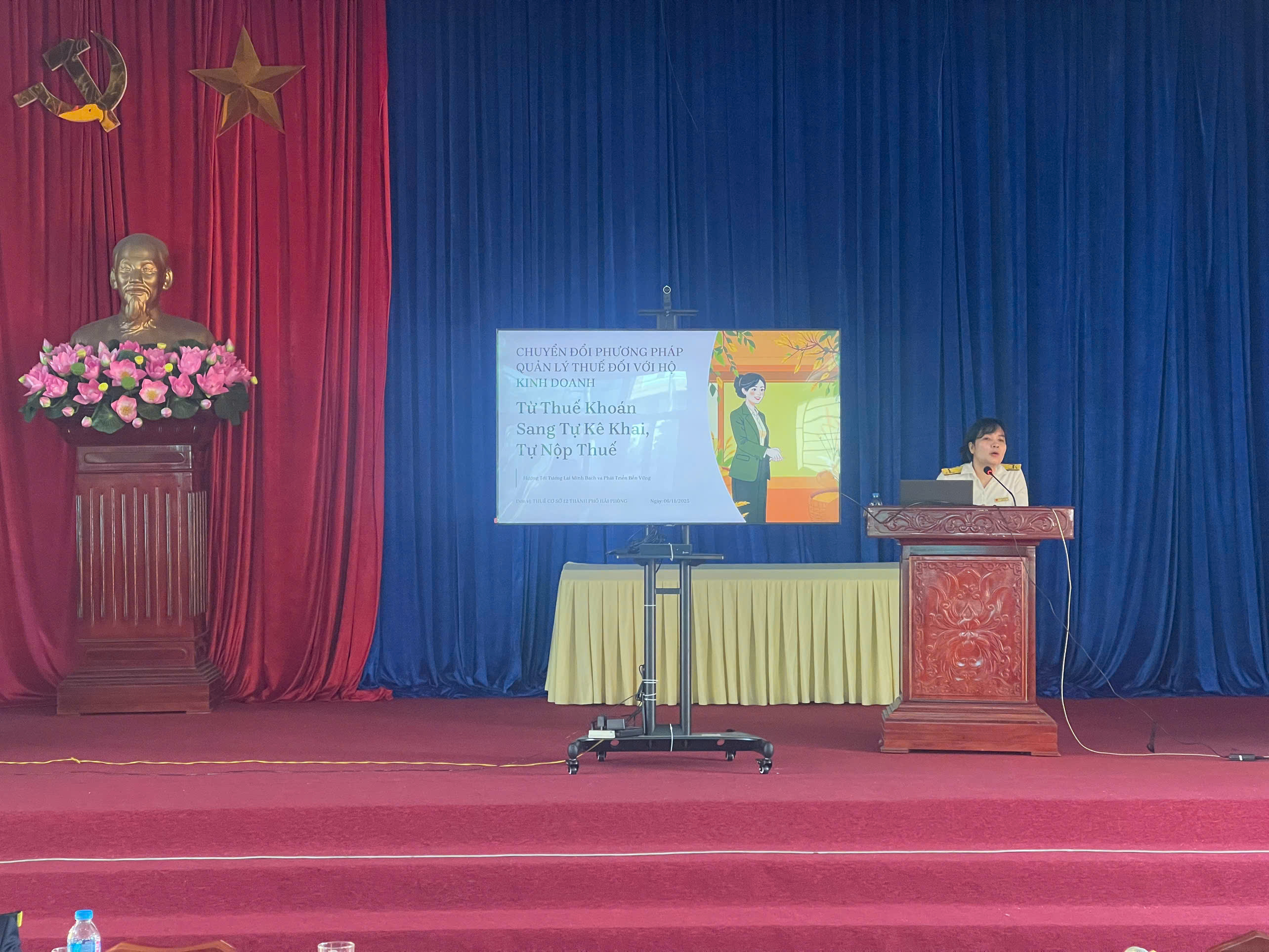Tại hội nghị, đại diện Thuế cơ sở 12 đã phổ biến những nội dung cốt lõi về chuyển đổi phương pháp quản lý thuế theo hướng hiện đại, minh bạch; giải thích rõ ý nghĩa của việc xóa bỏ thuế khoán, thay bằng quản lý thuế dựa trên dữ liệu, hóa đơn điện tử và kê khai trực tuyến. Quy trình thao tác trên ứng dụng Etax Mobile được hướng dẫn chi tiết, từng bước minh họa trực quan giúp các hộ kinh doanh dễ dàng tiếp cận và áp dụng trong thực tế.