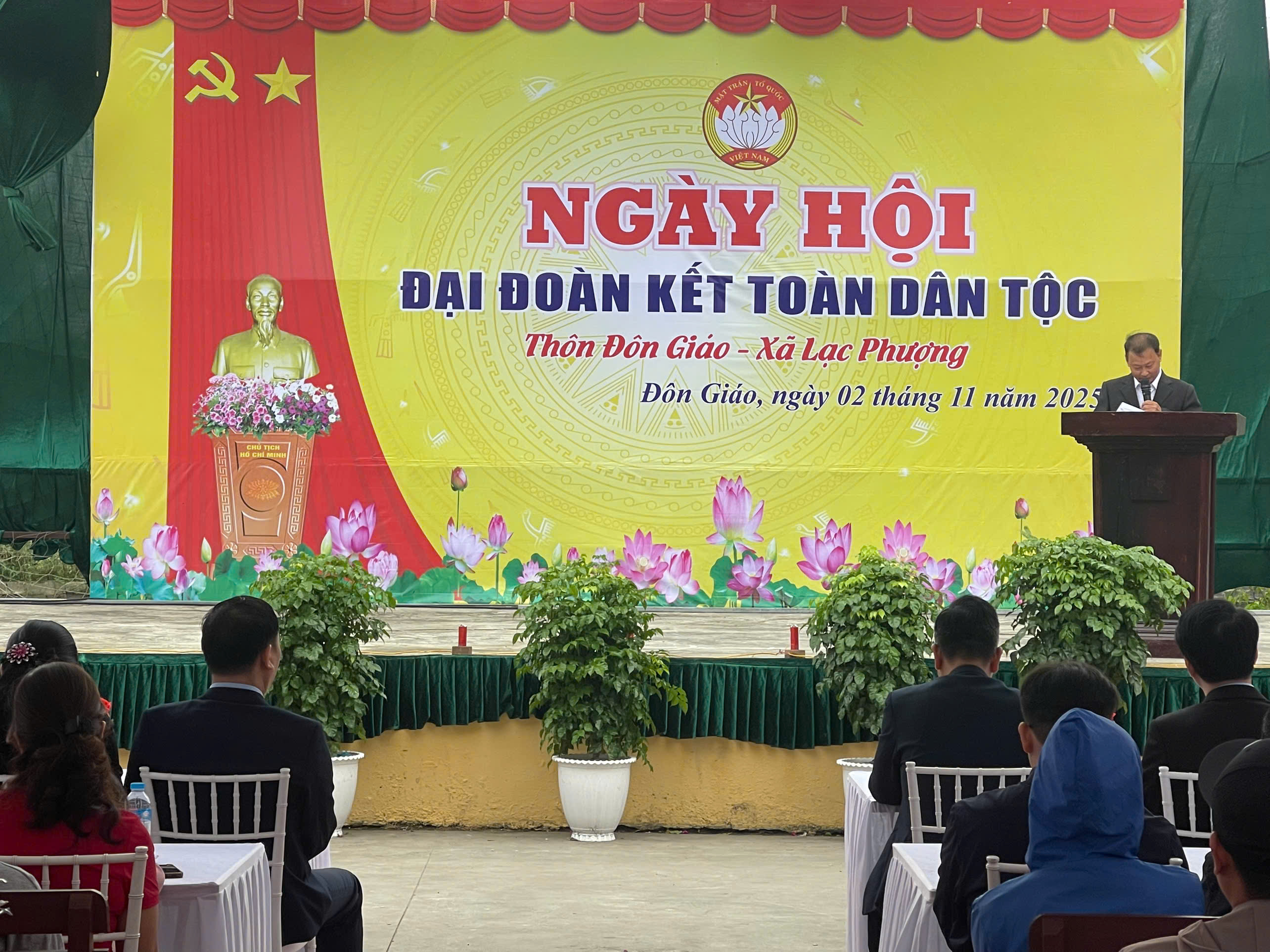 Đồng chí Bí thư Đảng ủy, Chủ tịch HĐND xã Lạc Phượng dự ngày hội Đại đoàn kết năm 2025 tại thôn Đôn Giáo
