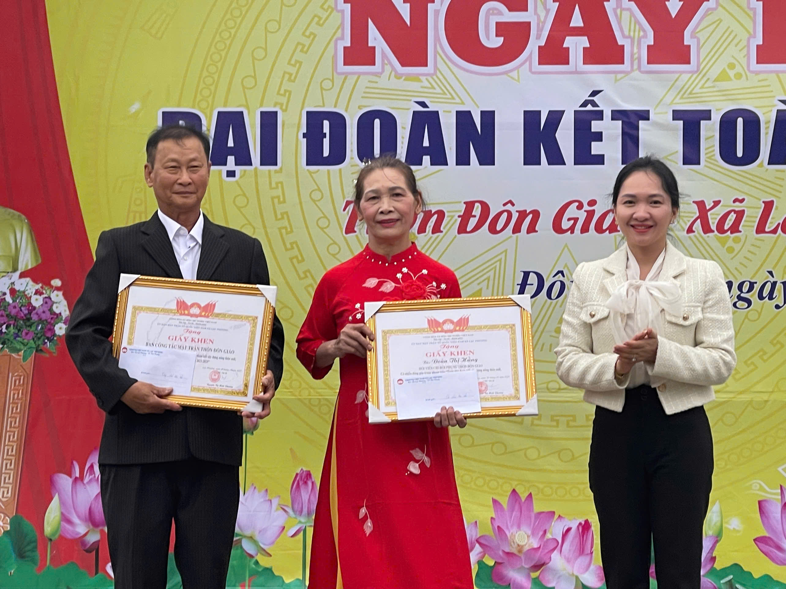 Cũng trong khuôn khổ ngày hội, thôn Đôn Giáo đã tổ chức các tiết mục văn nghệ quần chúng đặc sắc, ca ngợi Đảng, Bác Hồ, quê hương đất nước; đồng thời trao quà cho các hộ gia đình tiêu biểu, hộ có hoàn cảnh khó khăn, thể hiện tinh thần “lá lành đùm lá rách”, gắn kết cộng đồng và lan toả tinh thần nhân ái.