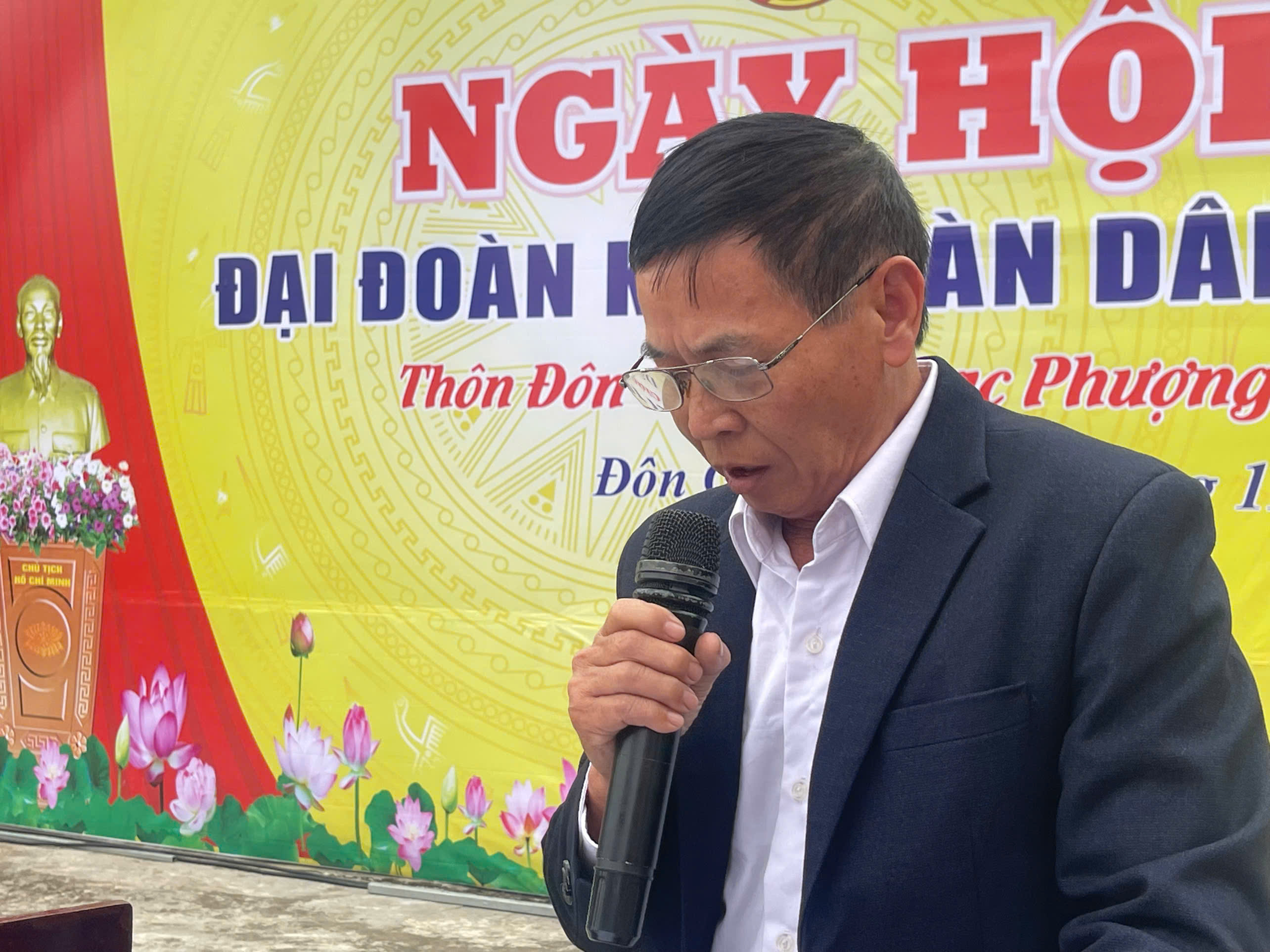 Phát biểu tại buổi lễ, đồng chí Bùi Văn Dũng – Bí thư Đảng uỷ, Chủ tịch HĐND xã ghi nhận và biểu dương những kết quả mà cán bộ và nhân dân thôn Đôn Giáo đã đạt được trong thời gian qua. Đồng chí nhấn mạnh: phát huy truyền thống đoàn kết, nhân dân trong thôn cần tiếp tục chung sức, đồng lòng, xây dựng khối đại đoàn kết vững mạnh, tích cực tham gia các phong trào thi đua yêu nước, góp phần cùng Đảng bộ và chính quyền xã Lạc Phượng thực hiện thắng lợi các mục tiêu phát triển kinh tế – xã hội năm 2025 và những năm tiếp theo.
