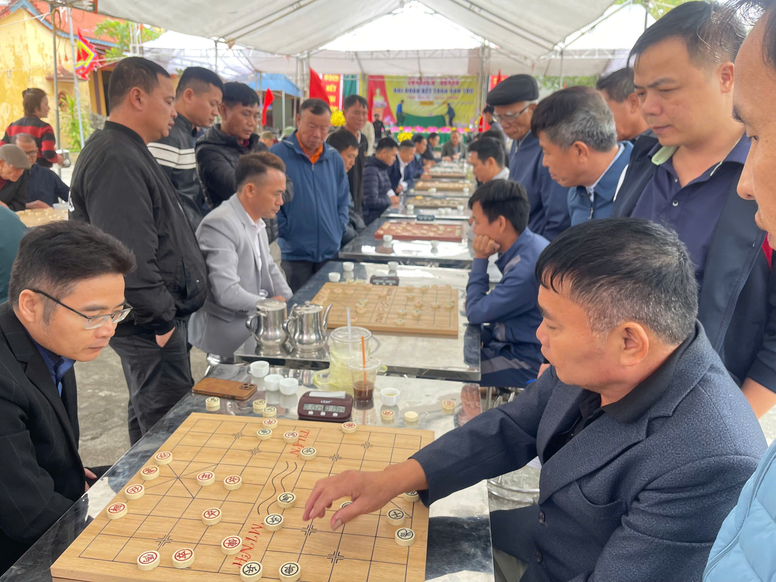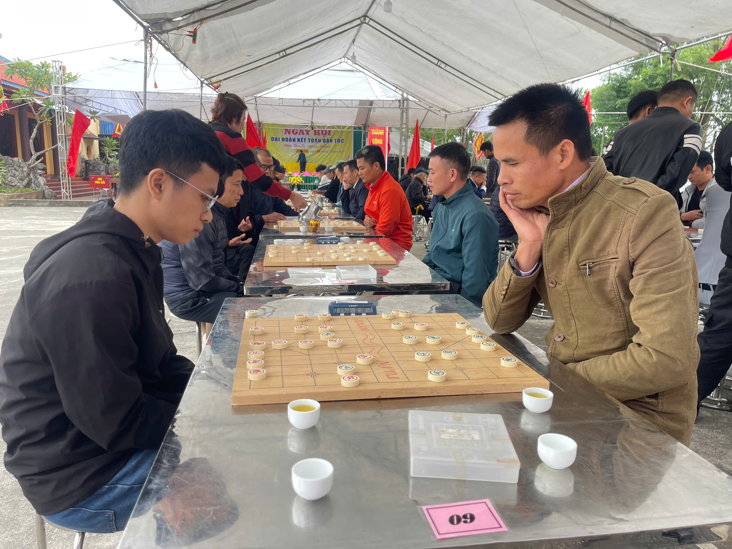 Ngay từ sáng sớm, khuôn viên Nhà văn hoá thôn Hàm Hy đã rộn ràng không khí thi đấu. Những bàn cờ được sắp ngay ngắn, người xem đứng quây quanh dõi theo từng nước đi đầy toan tính. Mỗi ván đấu là một cuộc so tài trí tuệ, nơi các kỳ thủ thể hiện khả năng phán đoán, sự bình tĩnh và bản lĩnh thi đấu. Giải đấu là dịp để các vận động viên giao lưu, học hỏi, rèn luyện trí tuệ, đồng thời góp phần lan toả phong trào “Toàn dân rèn luyện thân thể theo gương Bác Hồ vĩ đại” trên địa bàn xã.