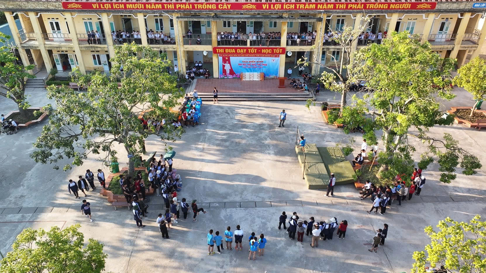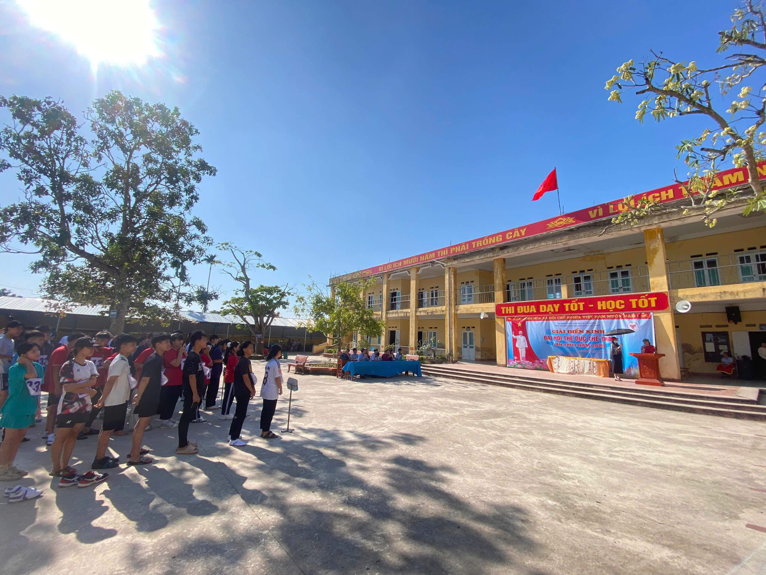 Ngay sau phần khai mạc, các nội dung thi đấu của Giải Điền kinh đã được triển khai đồng loạt. Các vận động viên bước vào tranh tài ở nhiều môn thi hấp dẫn như chạy ngắn, chạy bền, nhảy cao, nhảy xa và ném bóng. Tất cả đều là những học sinh khối THCS tiêu biểu, được tuyển chọn từ các trường học trong toàn xã, đại diện cho tinh thần thể thao trẻ trung, nhiệt huyết và kỷ luật. Không khí thi đấu diễn ra hào hứng, quyết liệt nhưng vẫn đảm bảo tinh thần đoàn kết và fair-play. Mỗi màn tranh tài đều nhận được sự cổ vũ nhiệt tình từ các thầy cô và bạn bè, góp phần tạo nên một ngày hội thể thao đúng nghĩa.