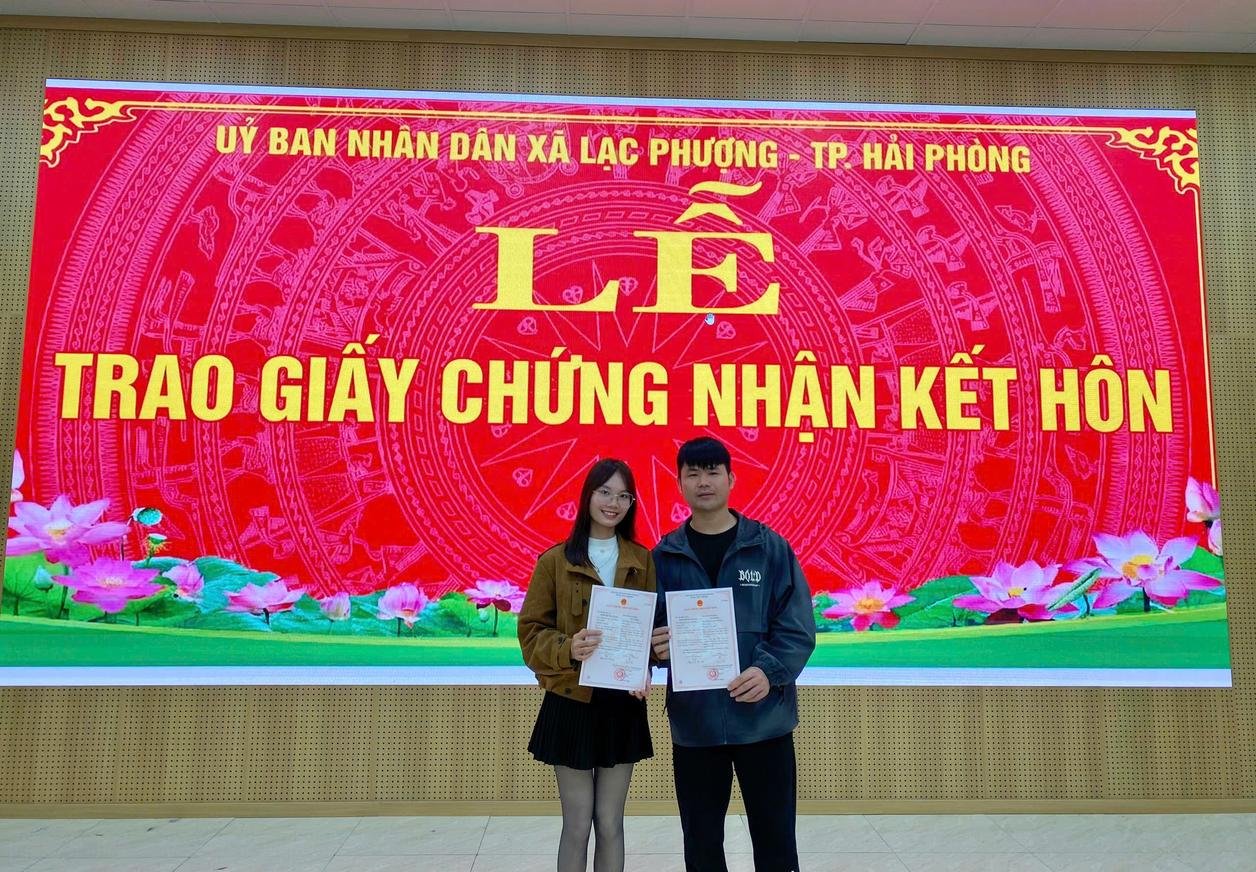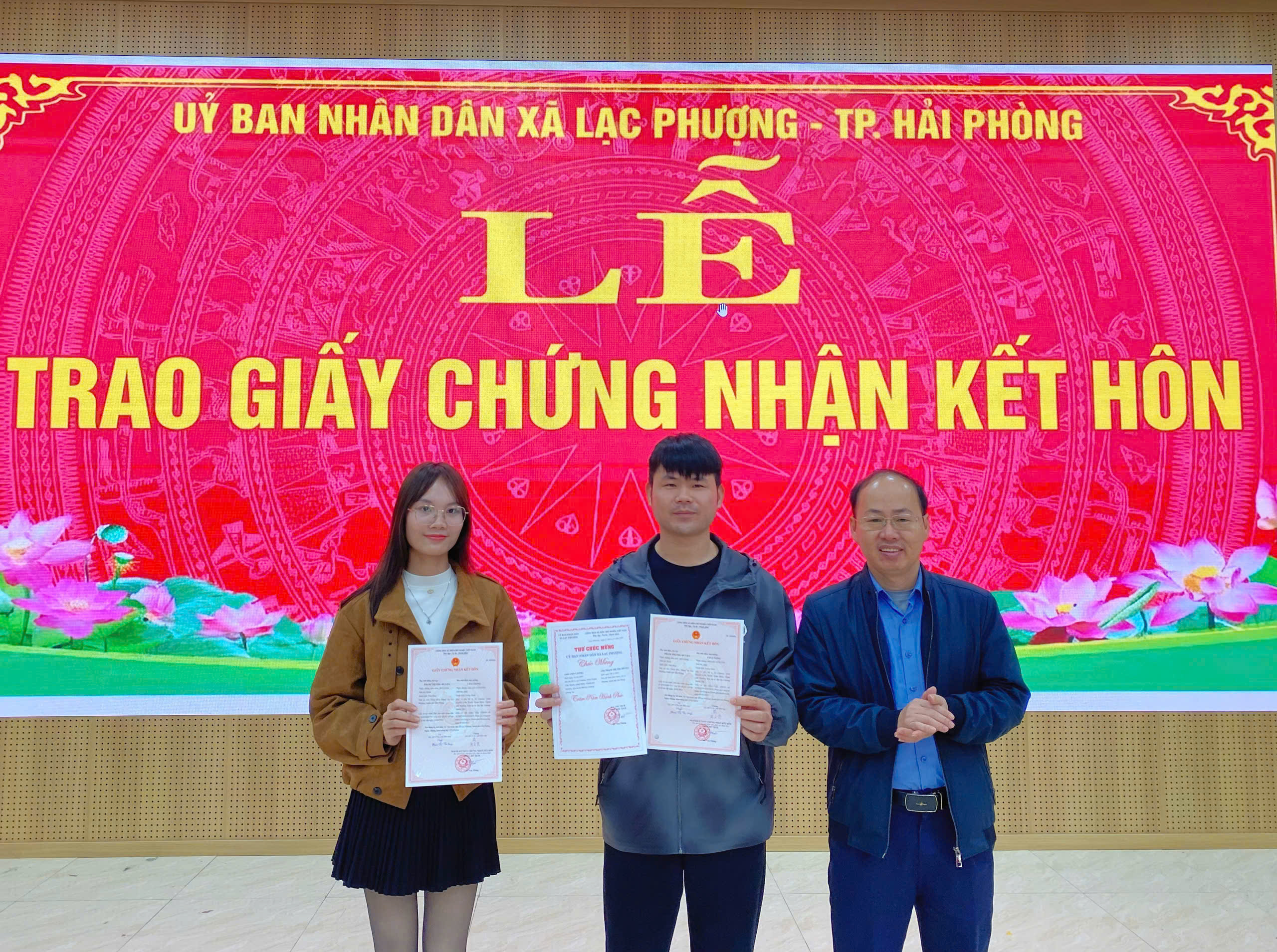 Sáng ngày 27/01/2026, tại Trung tâm Phục vụ Hành chính công, UBND xã Lạc Phượng đã tổ chức Lễ đăng ký và trao Giấy chứng nhận kết hôn có yếu tố nước ngoài cho cặp đôi: Chị Phạm Thị Thu Huyền (công dân thôn Hòa Nhuệ, xã Lạc Phượng) và anh Cen Lying (quốc tịch Trung Quốc).
