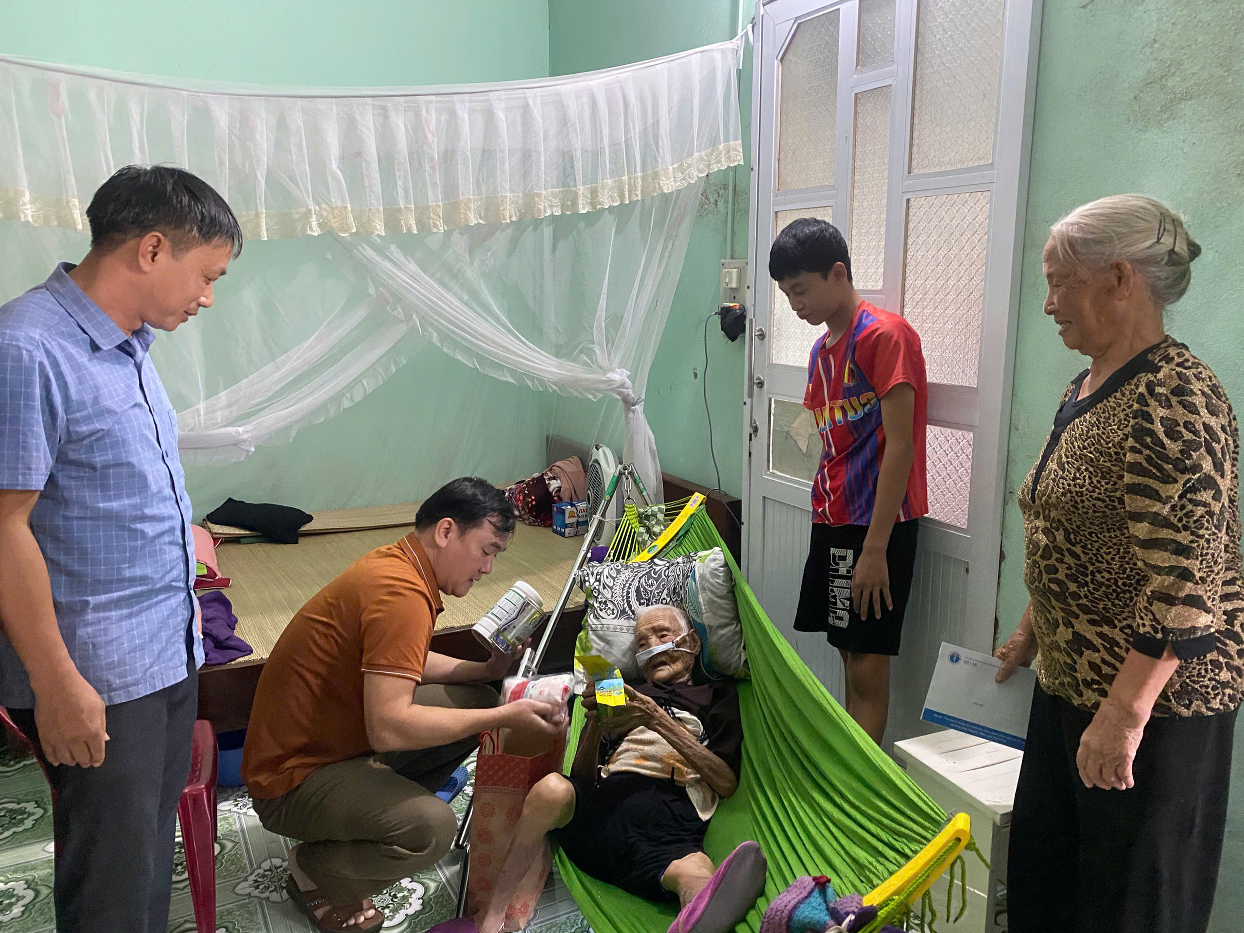 Lãnh đạo UBND xã thăm tặng quà cụ Đoàn Thị Nõn, 107 tuổi ở thôn Như Lâm