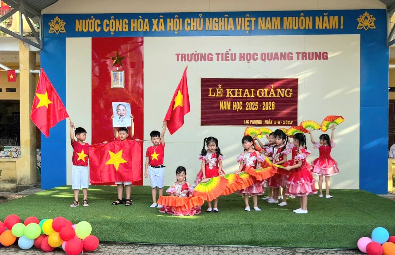 Niềm hân hoan, phấn khởi của học sinh các Trường Tiểu học trên địa bàn xã Lạc PhượngLễ khai giảng năm nay diễn ra ngắn gọn, trang trọng, đúng tinh thần chỉ đạo của ngành, tạo không khí vui tươi, an toàn và giàu ý nghĩa. Đặc biệt, từ 8 giờ đến 9 giờ 30 phút, các trường đồng loạt tổ chức khai giảng trực tuyến thông qua chương trình truyền hình trực tiếp trên VTV1, cùng học sinh cả nước dự lễ khai giảng chung và kỷ niệm 80 năm thành lập Bộ Quốc gia Giáo dục.